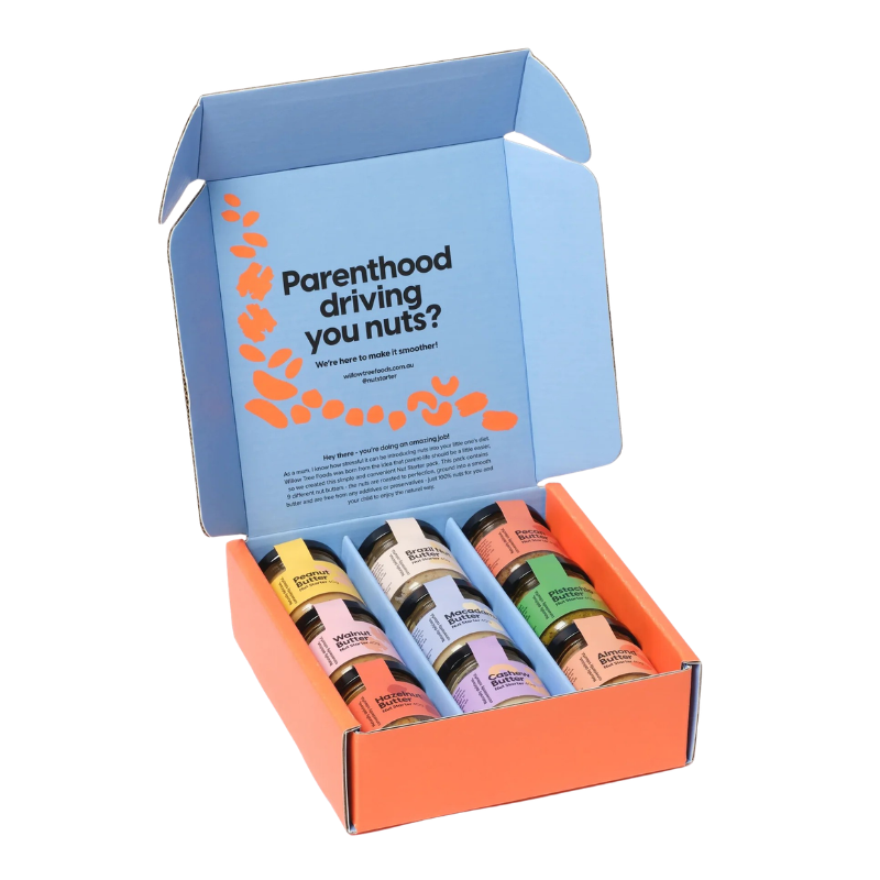 Introduce your little one to nuts the safe and simple way with Willow Tree Foods Nut Butter Starter Pack. Made specifically for allergen exposure and maintence, this box includes nine different nuts, allowing you to introduce each one individually. No prep, no mess just 100% nuts ready to eat.