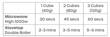 Place frozen cubes in a microwave-safe bowl or a heatproof bowl over gently simmering water. Heat until thawed and hot throughout, stirring during heating.