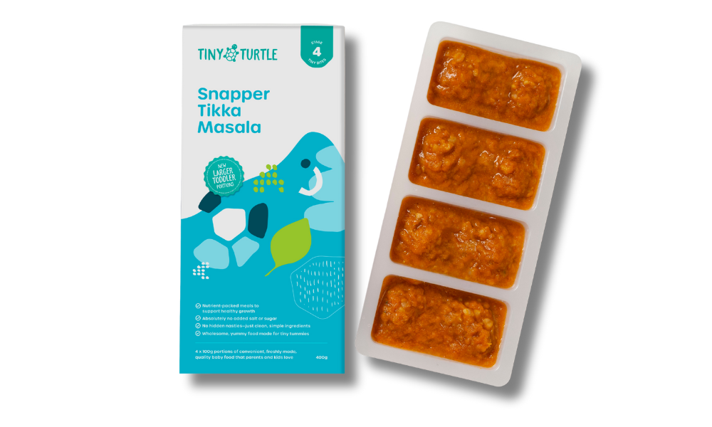 Made with high-quality ingredients, including Australian snapper with a very mild coconut curry sauce with brown rice. Perfect for little ones ready for more texture and flavour.