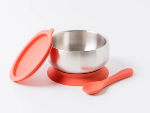 Lion and Lady Stainless Steel Feeding Bowl with Suction Base and Spoon