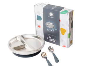 Lion and Lady Stainless Steel Plate with Suction Base and Cutlery
